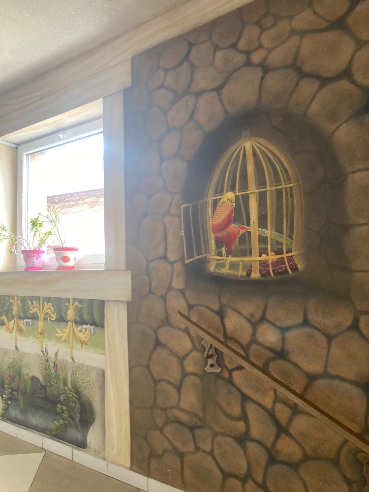 Prostor školy nabízí nádherné prostředí, kde je velký společný prostor pro mnohé aktivity, dvě třídy pro soustředěné nerušené učení, velký uzavřený dvůr s kašnou a venkovním posezením pod pergolou, možnost využití vnitřního bazénu pro výuku plavání či vodní hrátky, možnost saunování, relaxační místnost pro zklidnění a odpočinek. Dětem se tu nabízí prostor jak pro volnou hru, tak pro vlastní či řízenou vzdělávací aktivitu. Děti budou provázeny našimi laskavými průvodci, kteří se postarají o klidný průběh pobytu dětí a zároveň budou pro děti kamarády, na které se mohou spolehnout a cítit se v prostoru příjemně a bezpečně. Před školou je k dispozici velké dětské hřiště a v okolí se prostírá krásný hluboký les pro aktivity v přírodě a výlety. V prostoru školy je taktéž prostor pro relaxaci, rekreaci a posezení v restauraci, pronájem pokojů či welness.