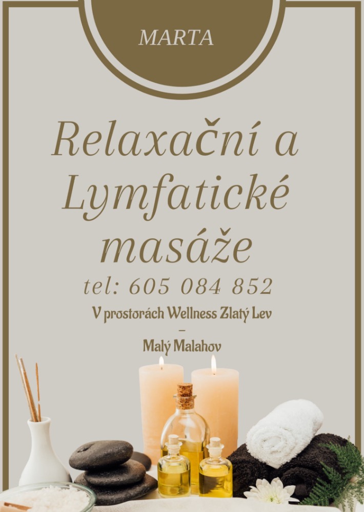 Nově vám nabízíme relaxační a lymfatické masáže od naší úžasné Marty, která opečuje vaše tělo i duši :-)