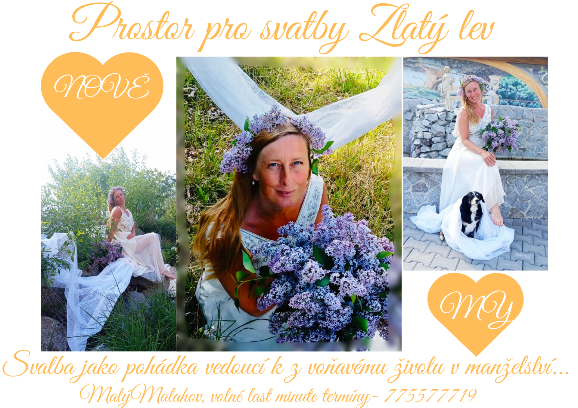 Nabízíme vám pronájem všech prostor ve Zlatém lvu na vaši pohádkovou svatbu. Celý areál si lze kompletně pronajmout a tím mít k dispozici restauraci, ubytování, venkovní dvůr a pergolu, zahradu a wellness centrum. Můžeme vám nabídnout služby kuchaře, masérky a dekoratérky, ale zároveň si u nás můžete udělat vše sami podle své vysněné představy.